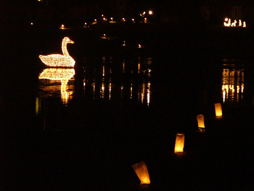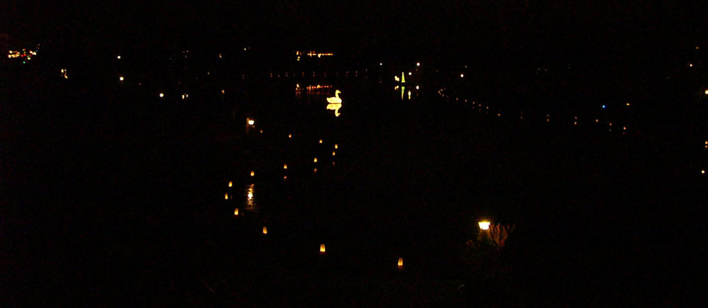 Surrounding the lake are 120 luminaries set up and lit by a small team of neighbors.